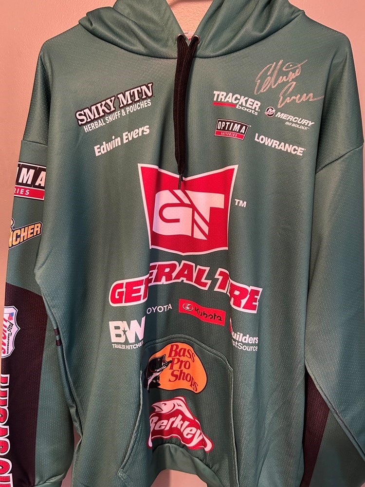MLF AND BPT PRO Edwin Evers autographed angler hooded jersey from the General Tire Team Series.