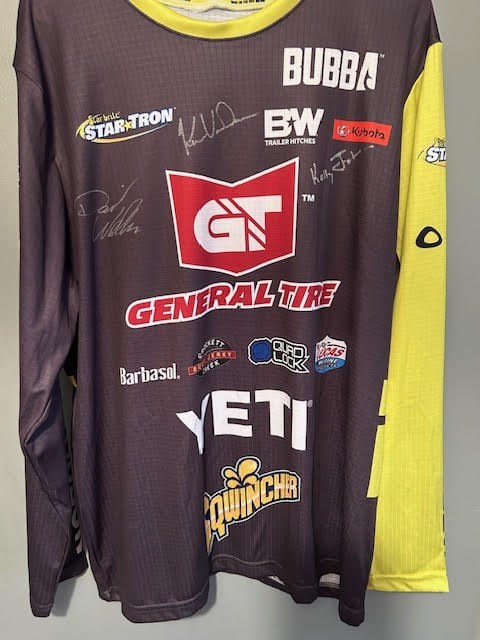 TEAM SERIES JERSEY AUTOGRAPED BY MLF AND BPT PROS KEVIN VANDAM, KELLY JORDON AND MARK DAVIS.