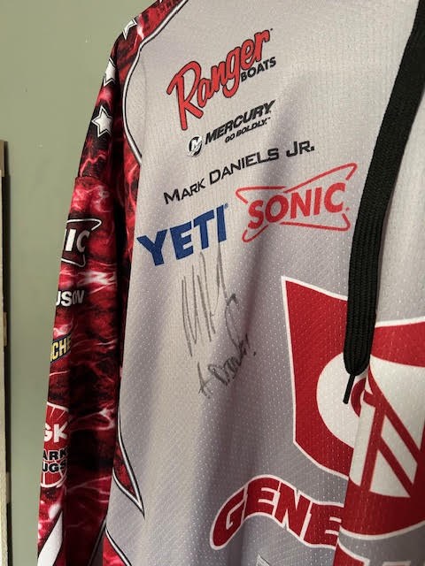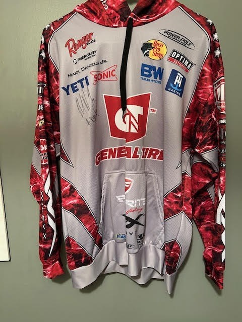 MLF AND BASS PRO TOUR MARK DANIELS JR AUTOGRAPHED ANGLER TEAM SERIES HOODED JERSEY