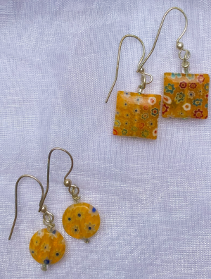 These earrings are made from Italian Murano glass. Donated by Jill and Link who were long term residents of San Pancho, currently living in Oaxaca. $200 pesos value