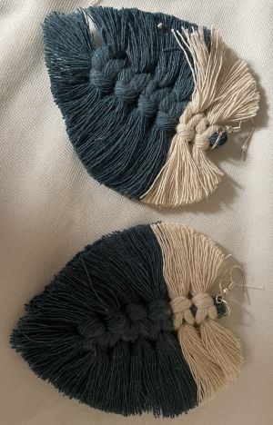 These bold unique hand made earrings are donated by a local macrame artist. This dramatic work offsets any outfit. $180 pesos value