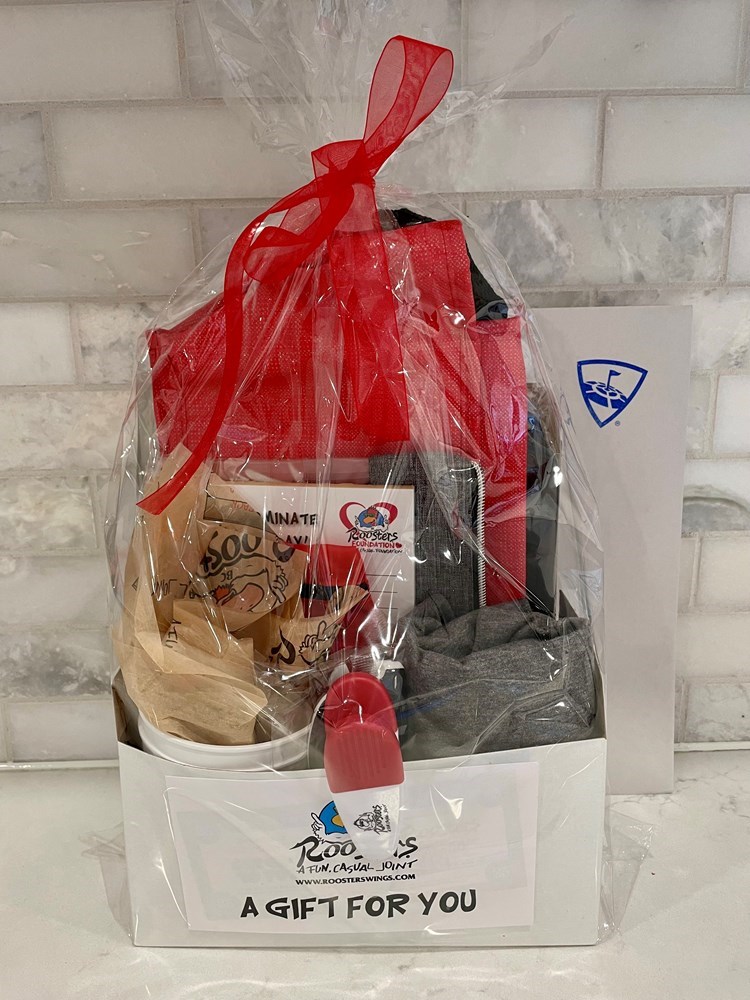 Enjoy $50 toward game play at Top Golf. Then head to Rooster's to keep the fun going. Rooster's basket include $25 gift certificate, bag, shirt, cups, sunglasses, waterproof pouch and more!