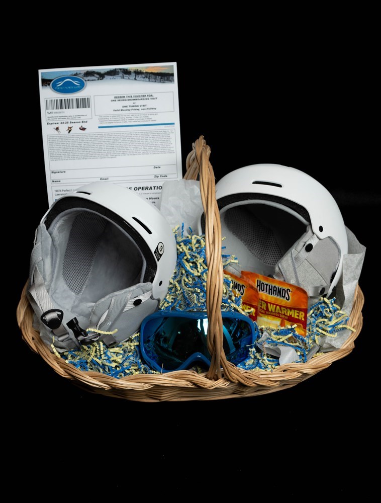 This basket includes: 2 - Perfect North Tickets for either Ski Lift or Snow Tubing (Monday.- Friday non-holiday) 2 - Small Ski Helmets 1 - Pair of Goggles 2 - Handwarmers
