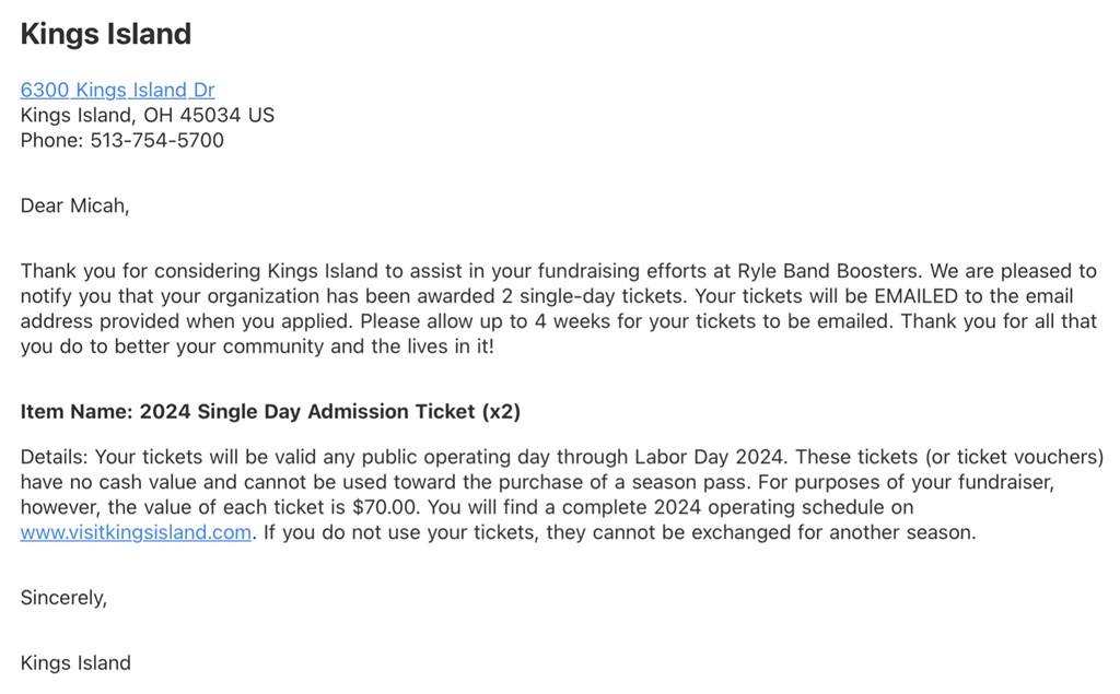 Donated by: King’s Island