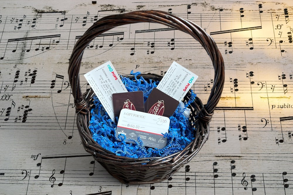 This basket includes: 2 - Tickets to any Friday or Saturday CSO performance (Good until May 2025) 1 - $100 Losanti Steakhouse gift certificate 2 - $15 Grater’s gift cards